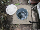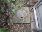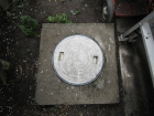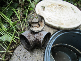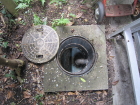 | お庭にある排水管の掃除口です。一般家庭で5〜6個くらいあります。大きいタイプと小さいタイプがあり、写真は大きいタイプです。 | 洗浄前 |